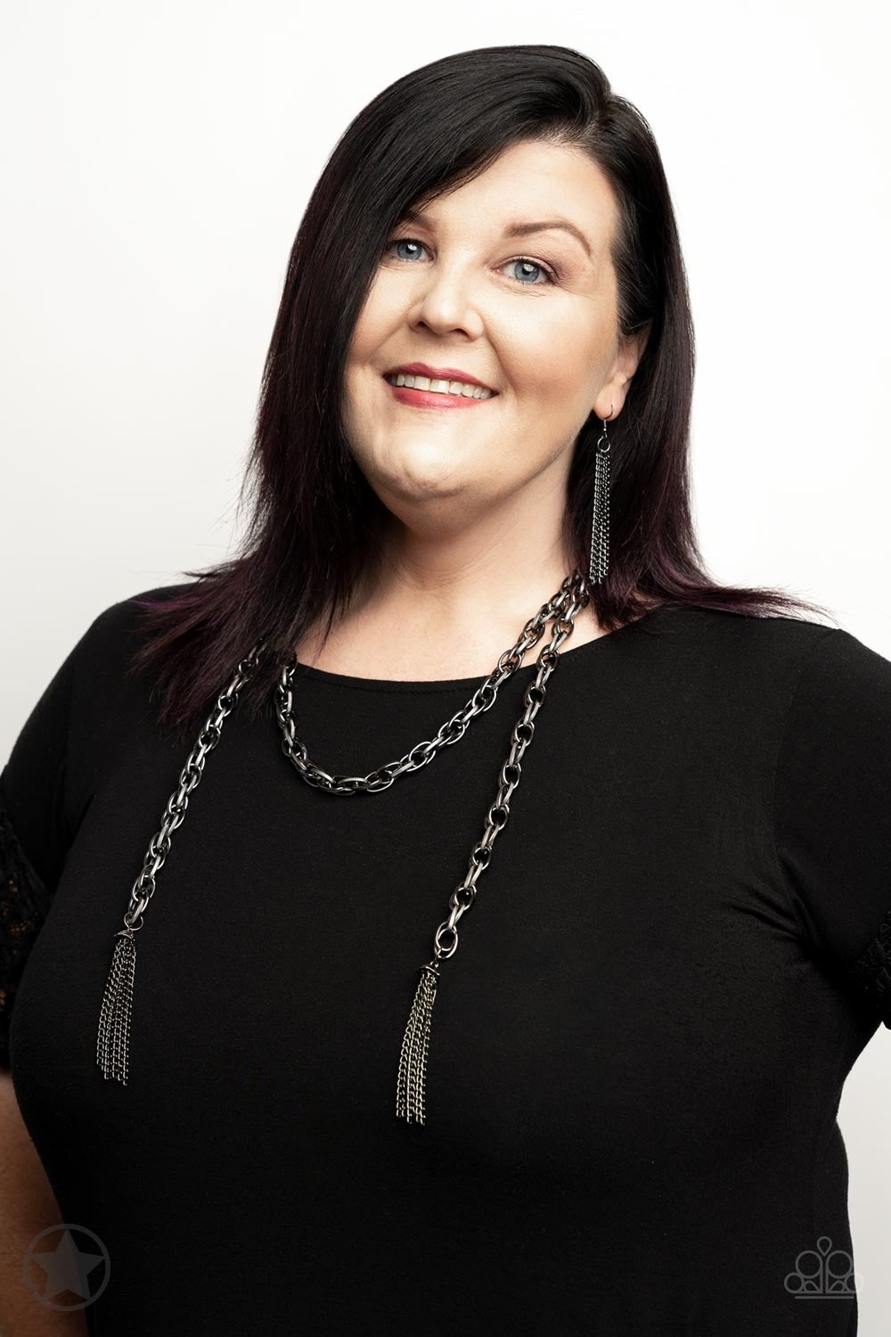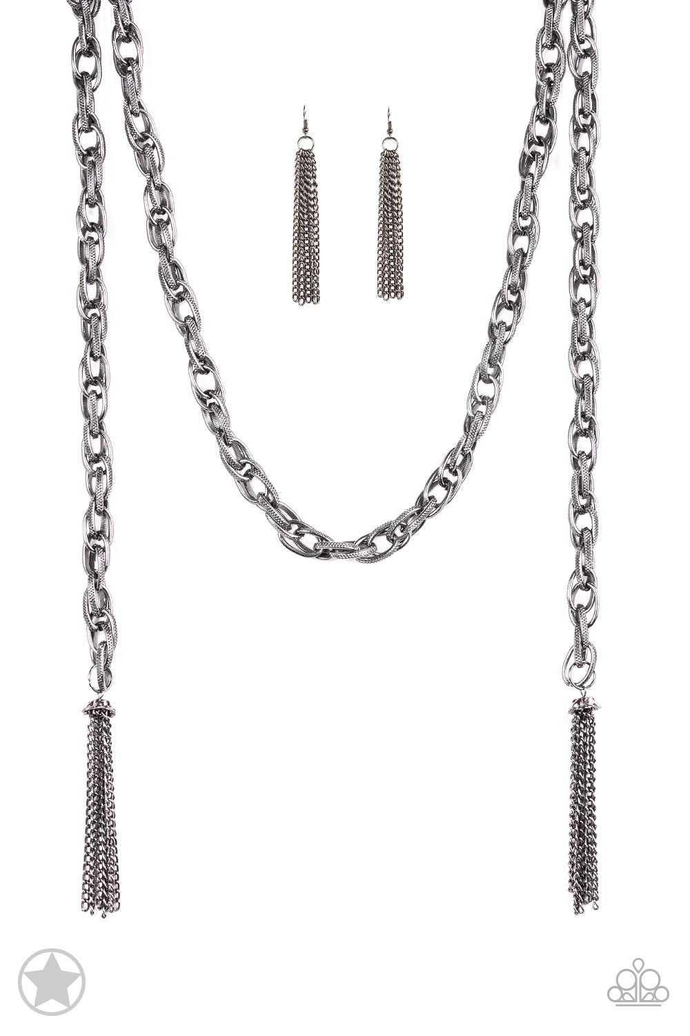 A single strand of spiraling, interlocking links with light-catching texture is anchored by two tassels of chain that add dramatic length to the piece. Undeniably the most versatile piece in Paparazzi's history, the scarf necklace features FIVE different ways to accessorize: Open Layer, Loop, Traditional Wrap, Double Knot, and Nautical Knot.