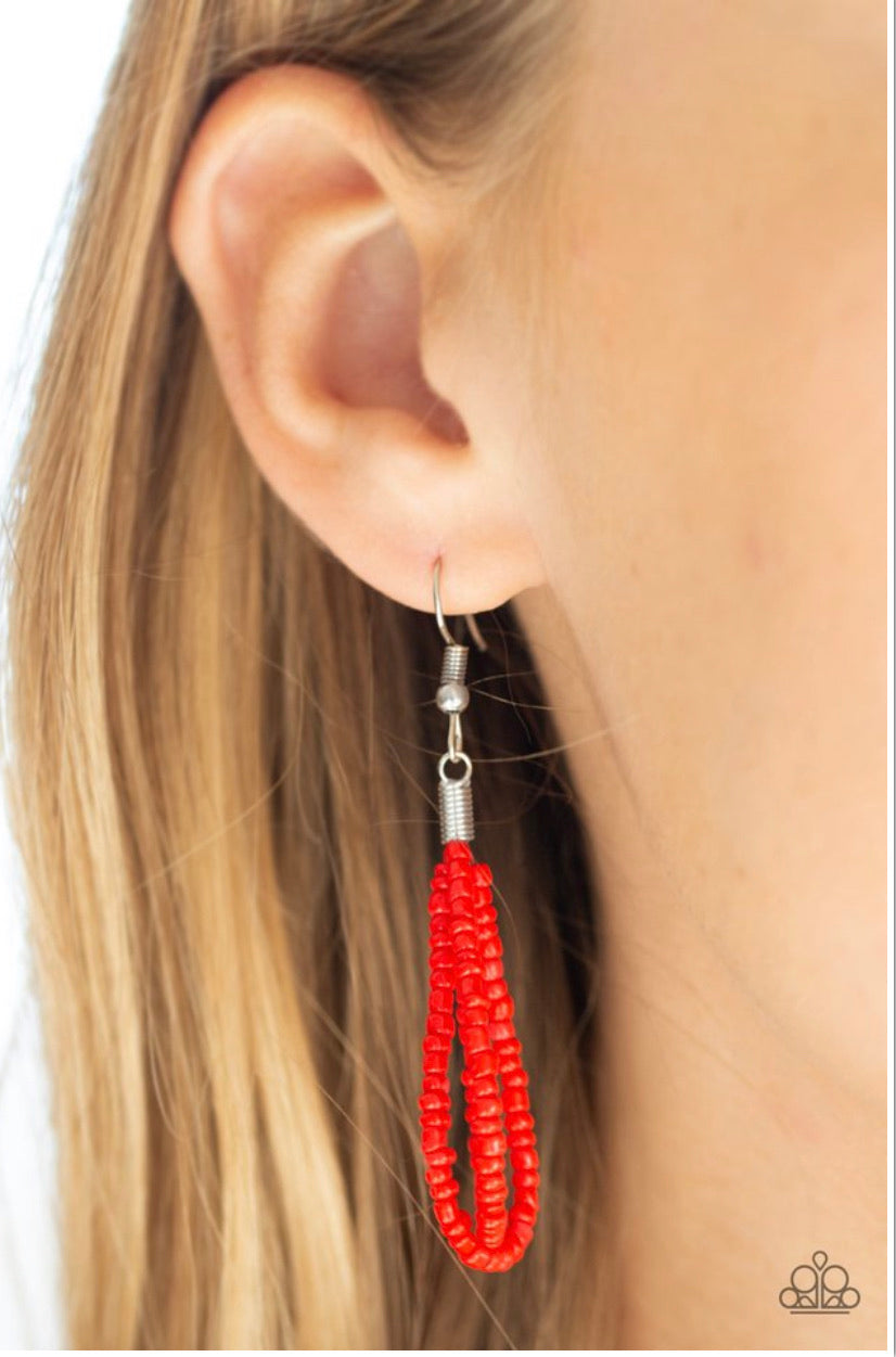 Varying in size, row after row of fiery red seed beads cascade down the chest, creating summery layers. Features an adjustable clasp closure.